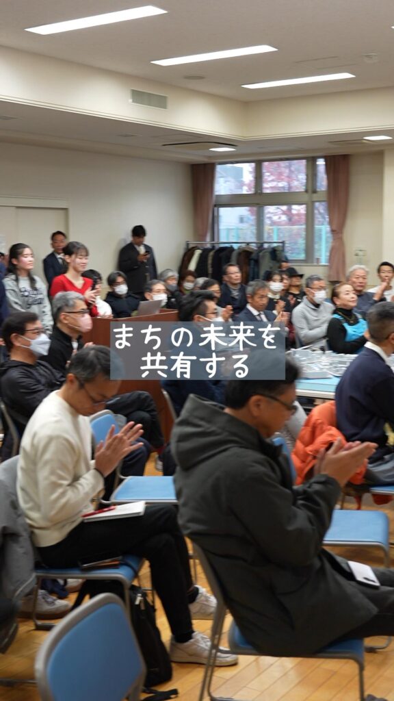 世代や立場を越えて熱心に語り合う姿は圧巻でした。テロップにもある通り、「大事なのは語り合う時間」。出来る・出来ないより、こうしたい・こうなって欲しい…「どんなまちにもなれる」という言葉が印象的でした。真剣さの中にも、誰もが参加しやすい前向きな熱意が会場に満ちていました。