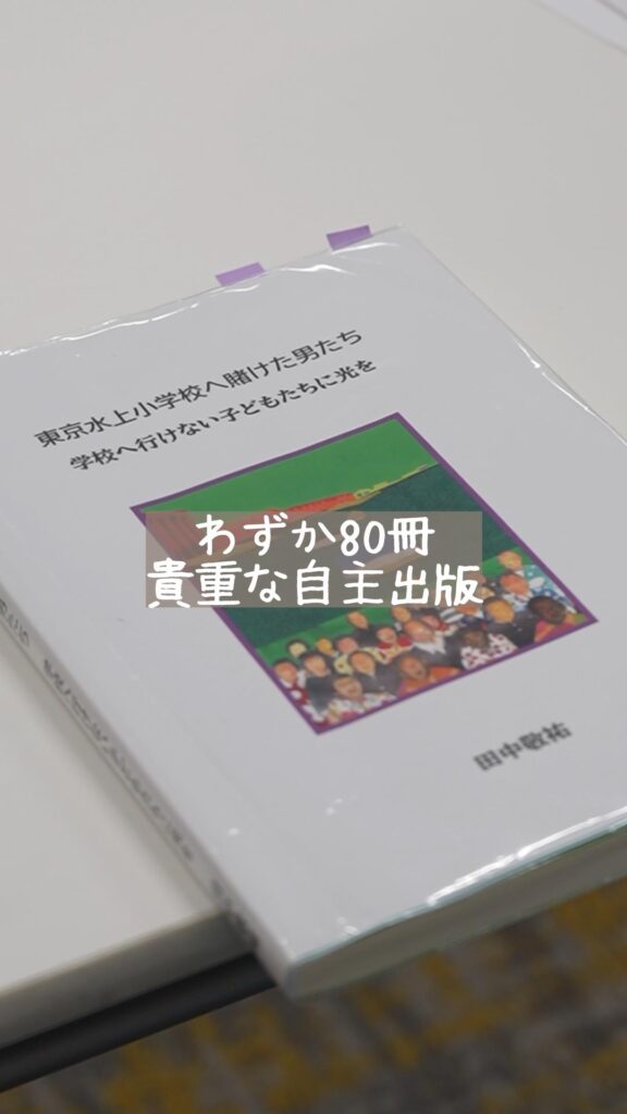 先日開催された「東京水上小学校を歴史に刻む」会では、今年出版された『東京水上学校へ賭けた男たち(著者:田中敬祐)』の執筆経緯が語られました。
